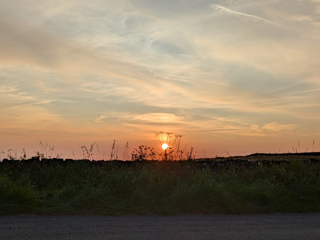 Since we were heading east, the beautiful sunset was all in our mirrors so we decided to stop near Hadrian’s Wall for a rest and to take it in although the best of it was after the sun had gone down.