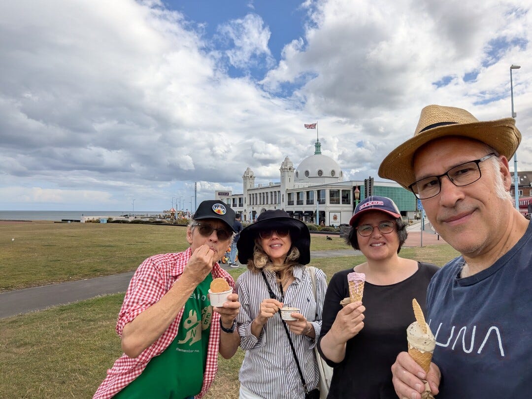 At 12:30 Hazel and I met Dean and Britta outside Fisherman’s Bay and sat on the prom eating our lunch. When the North Shields show was announced I suggested that they shouldn’t leave the North East without sampling the finest gelato in the area (or second finest according to Hazel) so after we’d finished our (fish and) chips, we headed to Di Meo’s for ice cream